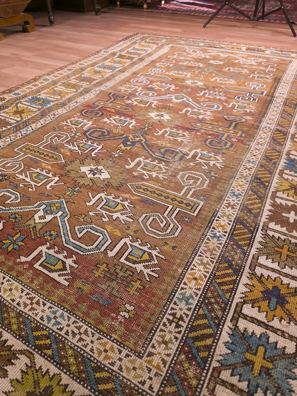 Ez a Perpedil szőnyeg rendkívül finom csomózása és gazdag szimbolizmusa révén igazi mestermű, amely a Kaukázus hegység alacsonyabb régióiban készült.