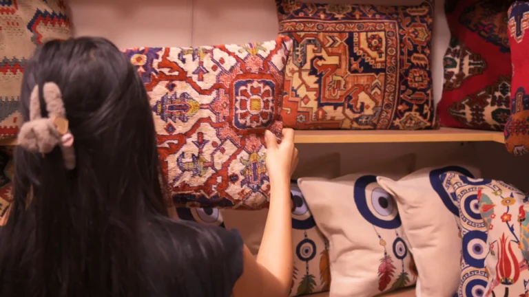 Szőnyegek, kelimek, mokettek és vintage textilek újrahasznosításával készített párnáink nemcsak egyediséget visznek otthonába, hanem egy csipet nosztalgiát is.
