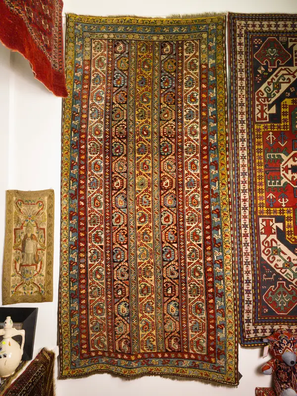 Ez a 125×270 cm-es futószőnyeg kiváló választás előtérbe, folyosóra, étkezőasztal mellé vagy akár falikárpitnak is. Egyetlen darab készült belőle a világon, és minden centimétere a 19. századi kaukázusi nomád kultúra lenyomata.